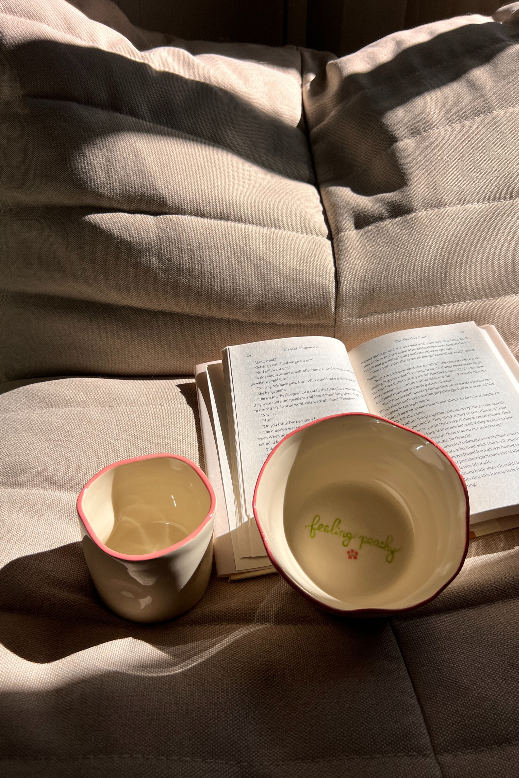 Une collection spécialement pensée et conçue pour vos moments de douceurs avec pitou. Imagine toi un doux matin de printemps, une douce brise passe à travers la fenêtre, ton roman favoris entre les mains. Un latté matcha entre les mains, pendant que pitou se repose à tes pieds.